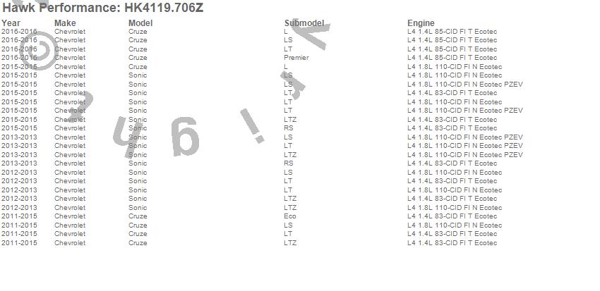 Below is an abreviated list of applications for the Sector 27 Brake Kits.Cruze, Sonic, Chevrolet, 2016, 2015, 2014, 2013, 2012, 2011 moreā¦