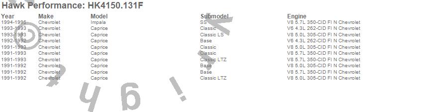 Below is an abreviated list of applications for the Sector 27 Brake Kits.Caprice, Impala, Chevrolet, 1996, 1995, 1994, 1993, 1992, 1991 moreā¦