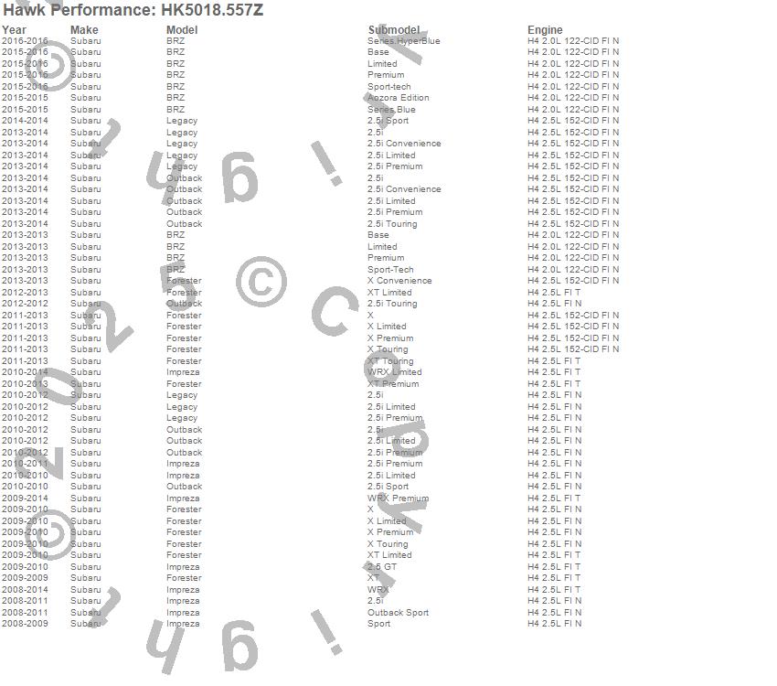Below is an abreviated list of applications for the Sector 27 Brake Kits.BRZ, Forester, Impreza, Legacy, Outback, Subaru, 2016, 2015, 2014, 2013, 2012, 2011, 2010, 2009, 2008 moreā¦