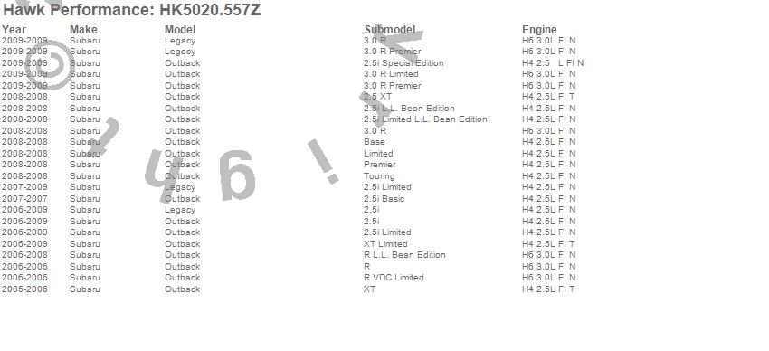 Below is an abreviated list of applications for the Sector 27 Brake Kits.Legacy, Outback, Subaru, 2009, 2008, 2007, 2006, 2005 moreā¦