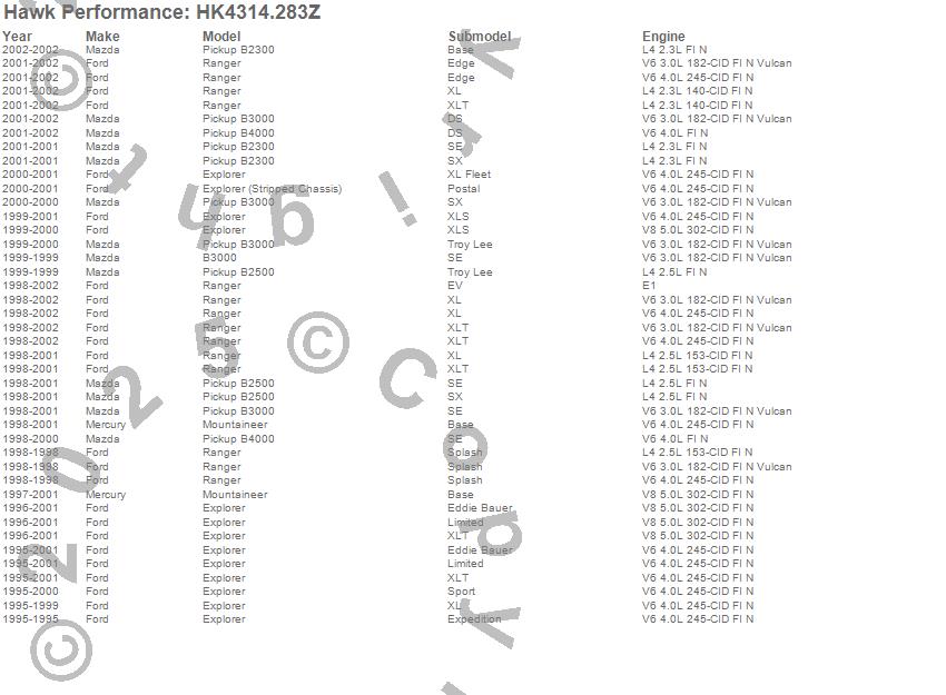 Below is an abreviated list of applications for the Sector 27 Brake Kits.B2300, B2500, B3000, B4000, Explorer, Explorer (Stripped Chassis), Mountaineer, Ranger, Ford, Mazda, Mercury, 2002, 2001, 2000, 1999, 1998, 1997, 1996, 1995 moreā¦