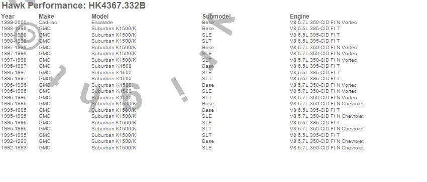Below is an abreviated list of applications for the Sector 27 Brake Kits.Escalade, K1500 Suburban, Cadillac, GMC, 2000, 1999, 1998, 1997, 1996, 1995, 1993, 1992 moreā¦