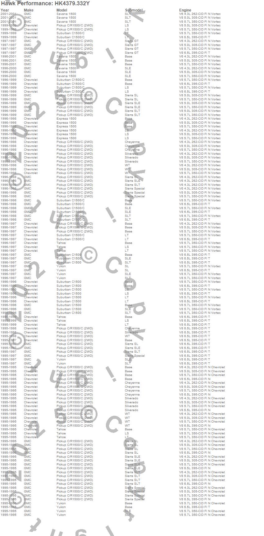 Below is an abreviated list of applications for the Sector 27 Brake Kits.C1500 Pickup, C1500 Suburban, Express 1500, Savana 1500, Tahoe, Yukon, Chevrolet, GMC, 2001, 2000, 1999, 1998, 1997, 1996, 1995 moreā¦