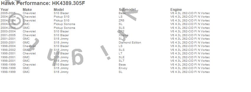 Below is an abreviated list of applications for the Sector 27 Brake Kits.S10 Blazer, S10 Pickup, S15 Jimmy, Sonoma, Chevrolet, GMC, 2005, 2004, 2003, 2002, 2001, 2000, 1999, 1998 moreā¦