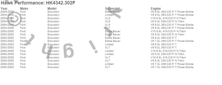 Below is an abreviated list of applications for the Sector 27 Brake Kits.Excursion, Ford, 2005, 2004, 2003, 2002, 2001, 2000 moreā¦