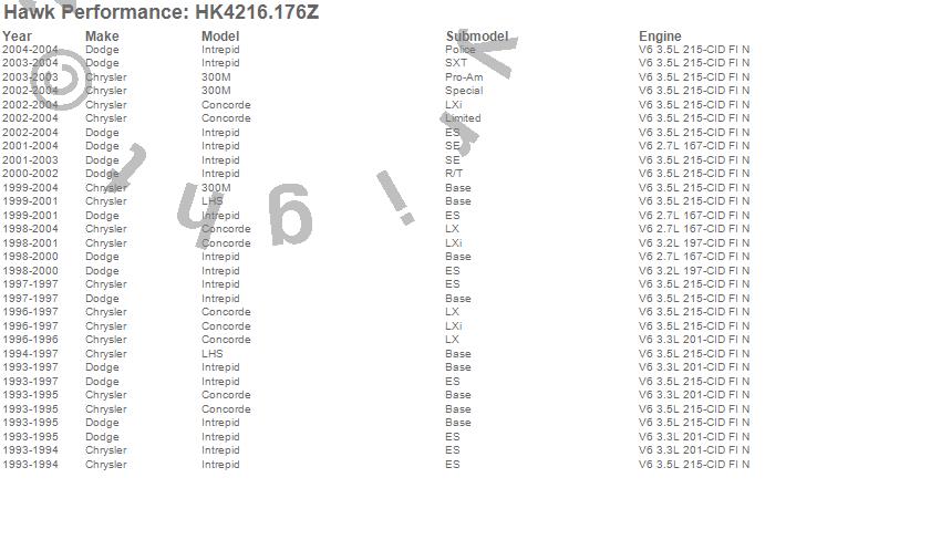 Below is an abreviated list of applications for the Sector 27 Brake Kits.300M, Concorde, Intrepid, LHS, Chrysler, Dodge, 2004, 2003, 2002, 2001, 2000, 1999, 1998, 1997, 1996, 1995, 1994, 1993 moreā¦