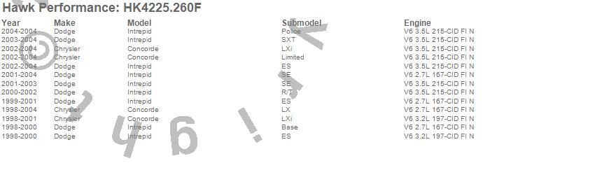 Below is an abreviated list of applications for the Sector 27 Brake Kits.Concorde, Intrepid, Chrysler, Dodge, 2004, 2003, 2002, 2001, 2000, 1999, 1998 moreā¦