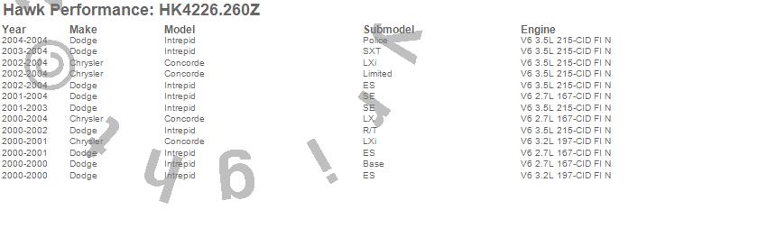 Below is an abreviated list of applications for the Sector 27 Brake Kits.Concorde, Intrepid, Chrysler, Dodge, 2004, 2003, 2002, 2001, 2000 moreā¦