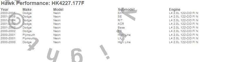 Below is an abreviated list of applications for the Sector 27 Brake Kits.Neon, Dodge, Plymouth, 2005, 2004, 2003, 2002, 2001, 2000 moreā¦