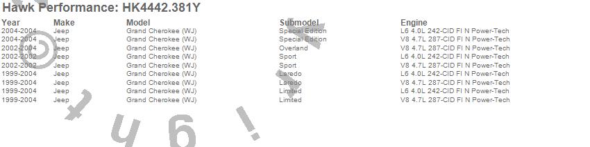 Below is an abreviated list of applications for the Sector 27 Brake Kits.Grand Cherokee (WJ), Jeep, 2004, 2003, 2002, 2001, 2000, 1999 moreā¦