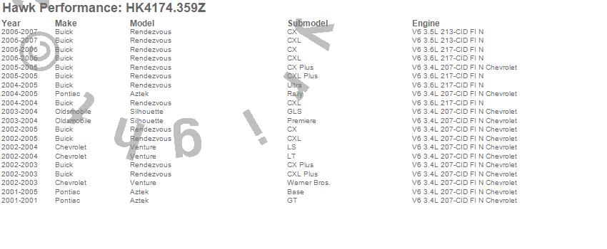 Below is an abreviated list of applications for the Sector 27 Brake Kits.Aztek, Rendezvous, Silhouette, Venture, Buick, Chevrolet, Oldsmobile, Pontiac, 2007, 2006, 2005, 2004, 2003, 2002, 2001 moreā¦