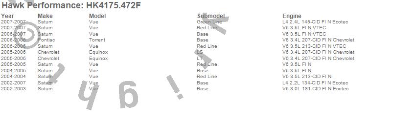 Below is an abreviated list of applications for the Sector 27 Brake Kits.Equinox, Torrent, Vue, Chevrolet, Pontiac, Saturn, 2007, 2006, 2005, 2004, 2003, 2002 moreā¦