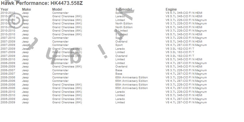 Below is an abreviated list of applications for the Sector 27 Brake Kits.Commander, Grand Cherokee (WK), Jeep, 2010, 2009, 2008, 2007, 2006, 2005 moreā¦