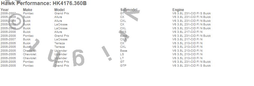 Below is an abreviated list of applications for the Sector 27 Brake Kits.Allure, Grand Prix, LaCrosse, Terraza, Uplander, Buick, Chevrolet, Pontiac, 2009, 2008, 2007, 2006, 2005 moreā¦