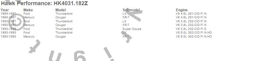 Below is an abreviated list of applications for the Sector 27 Brake Kits.Cougar, Thunderbird, Ford, Mercury, 1997, 1996, 1995, 1994, 1993 moreā¦