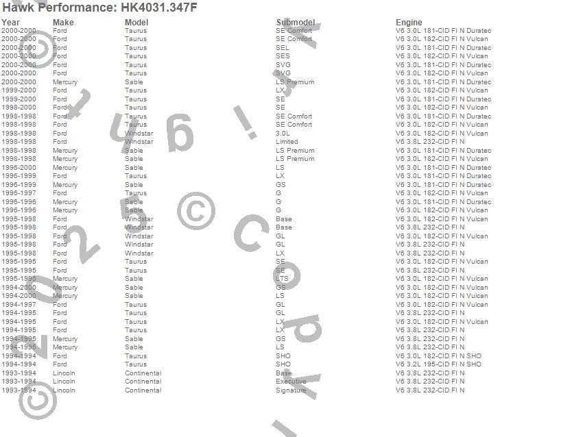 Below is an abreviated list of applications for the Sector 27 Brake Kits.Continental, Sable, Taurus, Windstar, Ford, Lincoln, Mercury, 2000, 1999, 1998, 1997, 1996, 1995, 1994, 1993 moreā¦