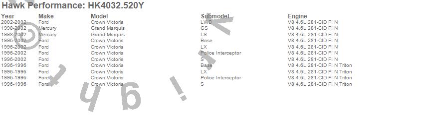Below is an abreviated list of applications for the Sector 27 Brake Kits.Crown Victoria, Grand Marquis, Ford, Mercury, 2002, 2001, 2000, 1999, 1998, 1997, 1996 moreā¦