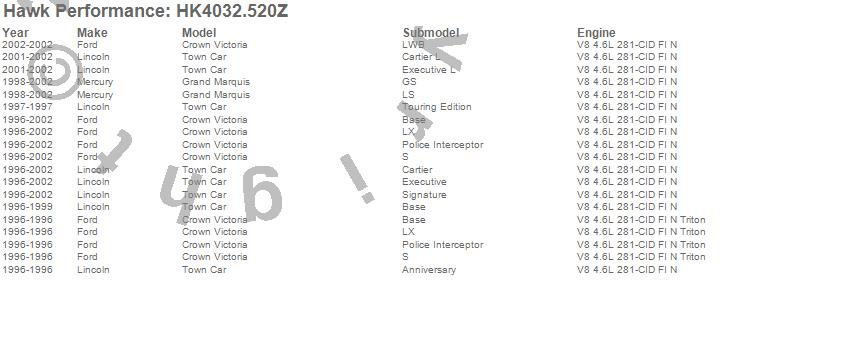 Below is an abreviated list of applications for the Sector 27 Brake Kits.Crown Victoria, Grand Marquis, Town Car, Ford, Lincoln, Mercury, 2002, 2001, 2000, 1999, 1998, 1997, 1996 moreā¦