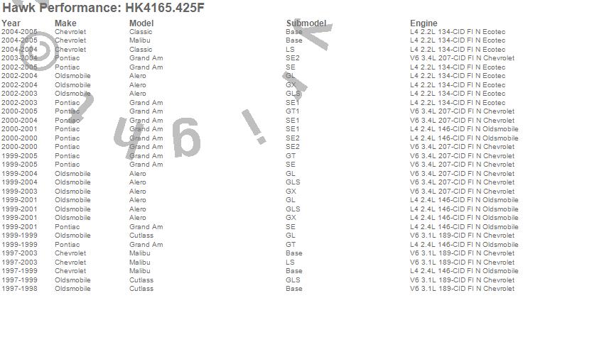 Below is an abreviated list of applications for the Sector 27 Brake Kits.Alero, Classic, Cutlass, Grand Am, Malibu, Chevrolet, Oldsmobile, Pontiac, 2005, 2004, 2003, 2002, 2001, 2000, 1999, 1998, 1997 moreā¦