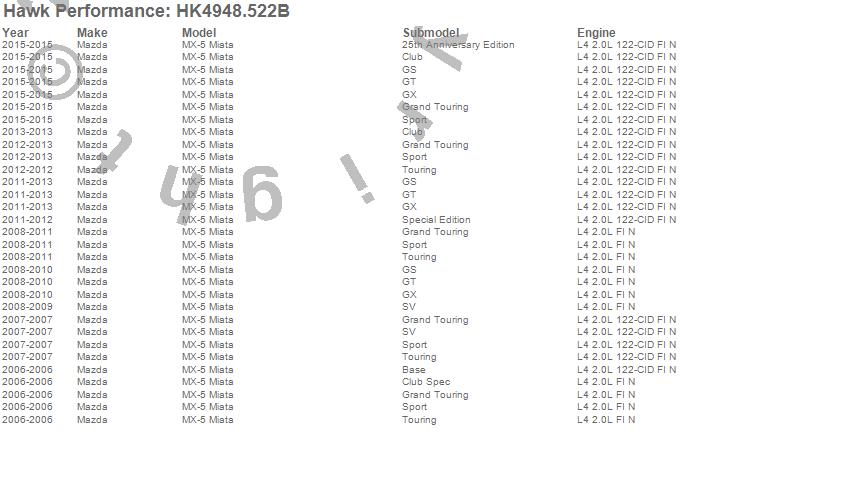 Below is an abreviated list of applications for the Sector 27 Brake Kits.MX-5 Miata, Mazda, 2015, 2013, 2012, 2011, 2010, 2009, 2008, 2007, 2006 moreā¦