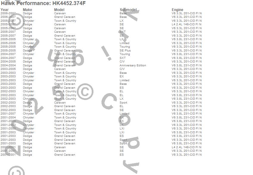 Below is an abreviated list of applications for the Sector 27 Brake Kits.Caravan, Grand Caravan, Town & Country, Chrysler, Dodge, 2007, 2006, 2005, 2004, 2003, 2002, 2001 moreā¦
