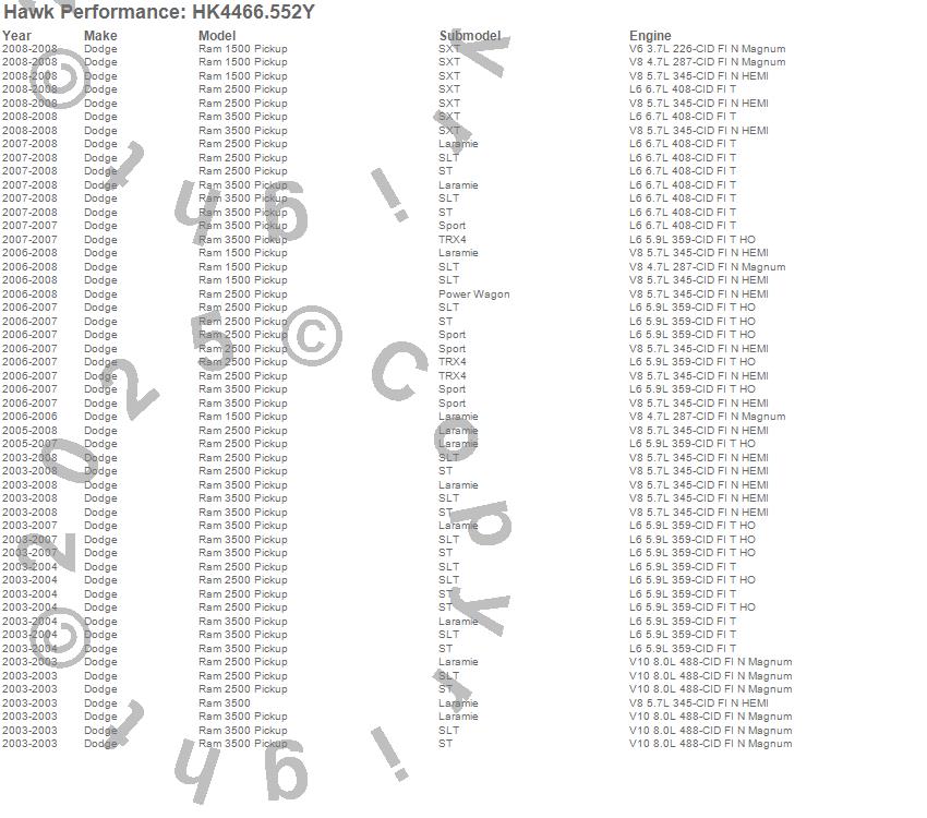 Below is an abreviated list of applications for the Sector 27 Brake Kits.Ram 1500, Ram 2500, Ram 3500, Dodge, 2008, 2007, 2006, 2005, 2004, 2003 moreā¦