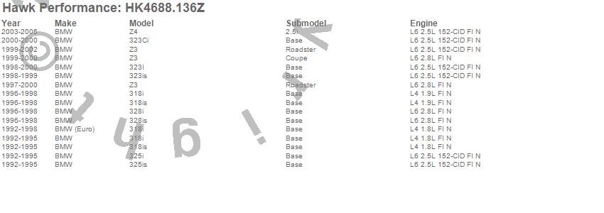 Below is an abreviated list of applications for the Sector 27 Brake Kits.318i, 318is, 323Ci, 323i, 323is, 325i, 325is, 328i, 328is, Z3, Z4, BMW, BMW (Euro), 2005, 2004, 2003, 2002, 2001, 2000, 1999 moreā¦