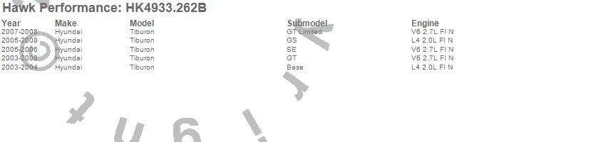 Below is an abreviated list of applications for the Sector 27 Brake Kits.Tiburon, Hyundai, 2008, 2007, 2006, 2005, 2004, 2003 moreā¦
