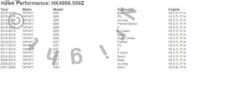 Below is an abreviated list of applications for the Sector 27 Brake Kits.G35, G37, Q60, INFINITI, 2015, 2013, 2012, 2011, 2010, 2009, 2008, 2007 moreā¦