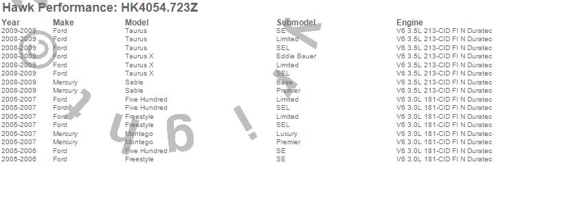 Below is an abreviated list of applications for the Sector 27 Brake Kits.Five Hundred, Freestyle, Montego, Sable, Taurus, Taurus X, Ford, Mercury, 2009, 2008, 2007, 2006, 2005 moreā¦