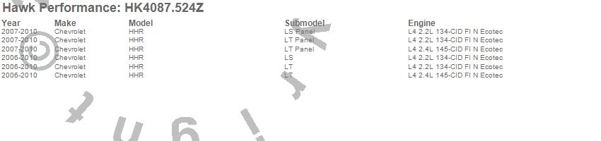 Below is an abreviated list of applications for the Sector 27 Brake Kits.HHR, Chevrolet, 2010, 2009, 2008, 2007, 2006 moreā¦