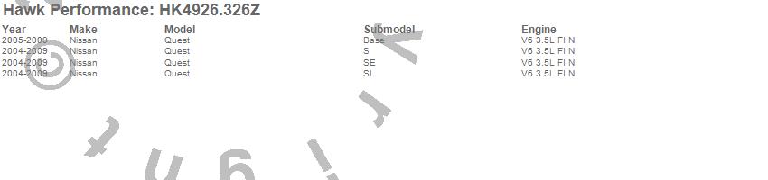 Below is an abreviated list of applications for the Sector 27 Brake Kits.Quest, Nissan, 2009, 2008, 2007, 2006, 2005, 2004 moreā¦
