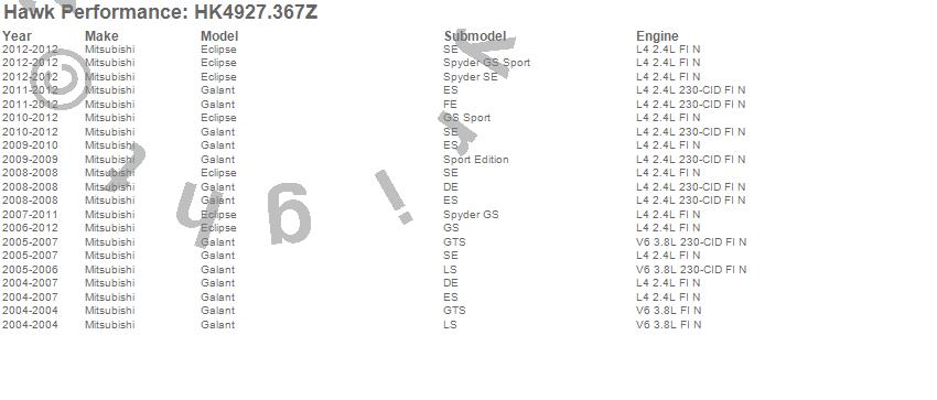 Below is an abreviated list of applications for the Sector 27 Brake Kits.Eclipse, Galant, Mitsubishi, 2012, 2011, 2010, 2009, 2008, 2007, 2006, 2005, 2004 moreā¦