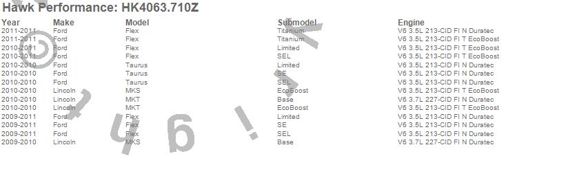 Below is an abreviated list of applications for the Sector 27 Brake Kits.Flex, MKS, MKT, Taurus, Ford, Lincoln, 2011, 2010, 2009 moreā¦