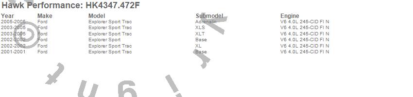 Below is an abreviated list of applications for the Sector 27 Brake Kits.Explorer Sport, Explorer Sport Trac, Ford, 2005, 2004, 2003, 2002, 2001 moreā¦