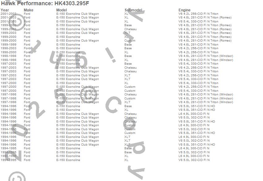 Below is an abreviated list of applications for the Sector 27 Brake Kits.E-150 Econoline, E-150 Econoline Club Wagon, Ford, 2003, 2002, 2001, 2000, 1999, 1998, 1997, 1996, 1995, 1994 moreā¦