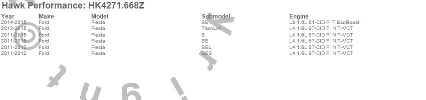 Below is an abreviated list of applications for the Sector 27 Brake Kits.Fiesta, Ford, 2015, 2014, 2013, 2012, 2011 moreā¦