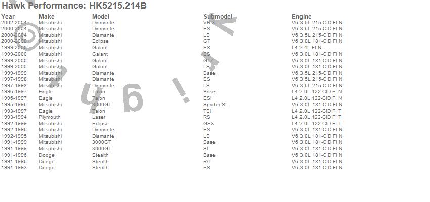 Below is an abreviated list of applications for the Sector 27 Brake Kits.3000GT, Diamante, Eclipse, Galant, Laser, Stealth, Talon, Dodge, Eagle, Mitsubishi, Plymouth, 2004, 2003, 2002, 2001, 2000, 1999, 1998, 1997, 1996 moreā¦