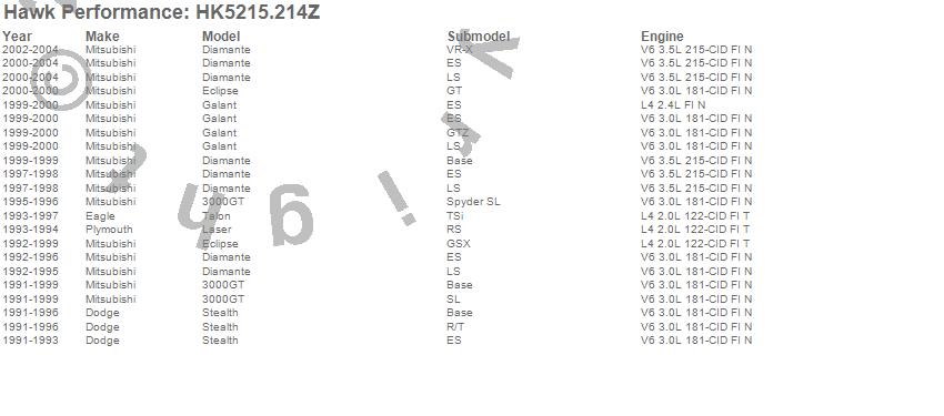 Below is an abreviated list of applications for the Sector 27 Brake Kits.3000GT, Diamante, Eclipse, Galant, Laser, Stealth, Talon, Dodge, Eagle, Mitsubishi, Plymouth, 2004, 2003, 2002, 2001, 2000, 1999, 1998, 1997, 1996 moreā¦