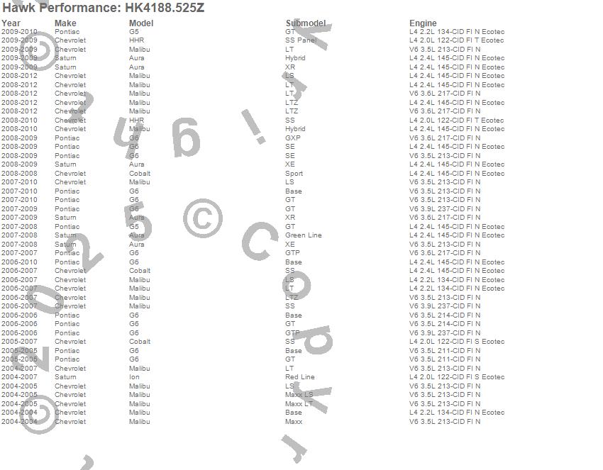 Below is an abreviated list of applications for the Sector 27 Brake Kits.Aura, Cobalt, G5, G6, HHR, Ion, Malibu, Chevrolet, Pontiac, Saturn, 2012, 2011, 2010, 2009, 2008, 2007, 2006, 2005, 2004 moreā¦
