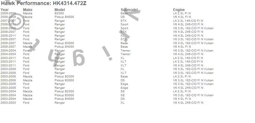 Below is an abreviated list of applications for the Sector 27 Brake Kits.B2300, B3000, B4000, Ranger, Ford, Mazda, 2011, 2010, 2009, 2008, 2007, 2006, 2005, 2004, 2003 moreā¦