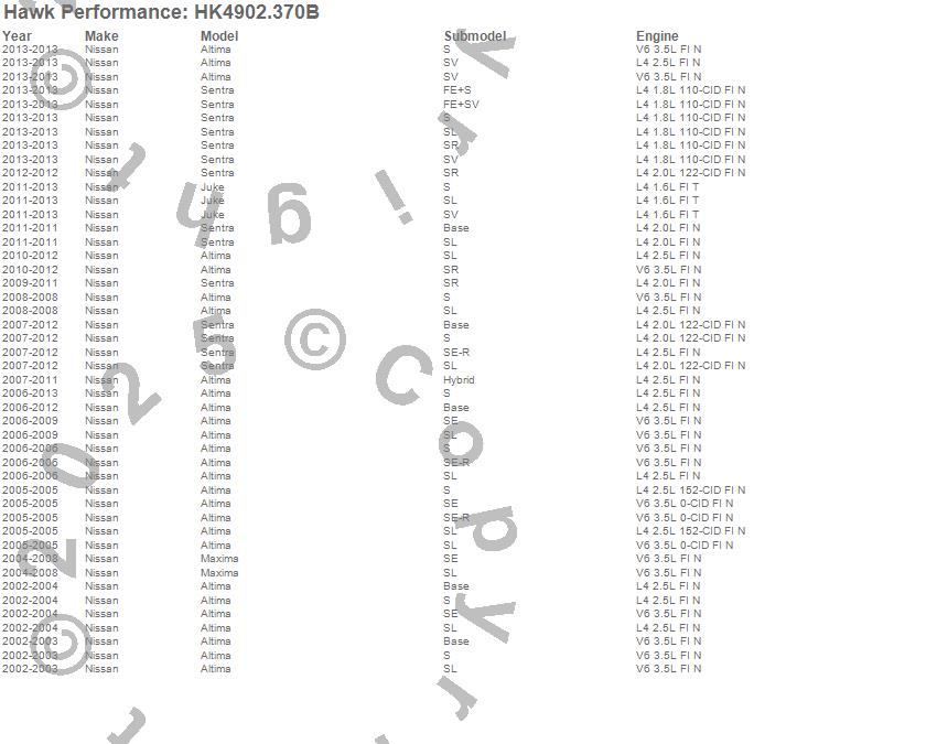 Below is an abreviated list of applications for the Sector 27 Brake Kits.Altima, Juke, Maxima, Sentra, Nissan, 2013, 2012, 2011, 2010, 2009, 2008, 2007, 2006, 2005, 2004, 2003, 2002 moreā¦