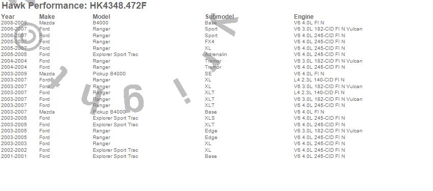 Below is an abreviated list of applications for the Sector 27 Brake Kits.B4000, Explorer Sport Trac, Ranger, Ford, Mazda, 2009, 2008, 2007, 2006, 2005, 2004, 2003, 2002, 2001 moreā¦