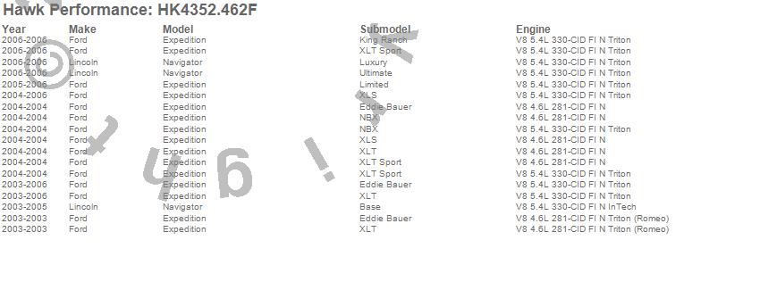 Below is an abreviated list of applications for the Sector 27 Brake Kits.Expedition, Navigator, Ford, Lincoln, 2006, 2005, 2004, 2003 moreā¦