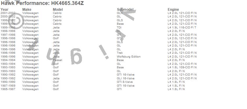 Below is an abreviated list of applications for the Sector 27 Brake Kits.Cabrio, Golf, Jetta, Passat, Volkswagen, 2002, 2001, 2000, 1999, 1998, 1997, 1996, 1994, 1993, 1992, 1991, 1990, 1989, 1988, 1987 moreā¦
