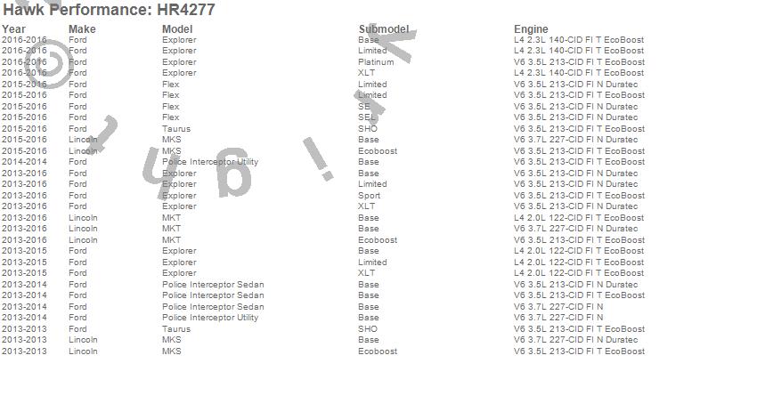 Below is an abreviated list of applications for the Sector 27 Rotor.Explorer, Flex, MKS, MKT, Police Interceptor Sedan, Police Interceptor Utility, Taurus, Ford, Lincoln, 2016, 2015, 2014, 2013 moreā¦