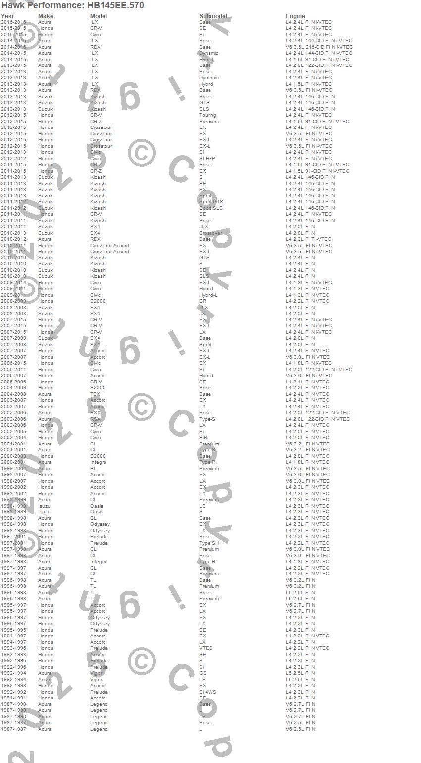 Below is an abreviated list of applications for the Blue 42 Disc Brake Pad.Accord, Accord Crosstour, Civic, CL, CR-V, CR-Z, Crosstour, ILX, Integra, Kizashi, Legend, Oasis, Odyssey, Prelude, RDX, RL, RSX, S2000, SX4, TL moreā¦
