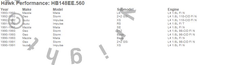 Below is an abreviated list of applications for the Blue 42 Disc Brake Pad.Impulse, Miata, Storm, Geo, Isuzu, Mazda, 1993, 1992, 1991, 1990 moreā¦