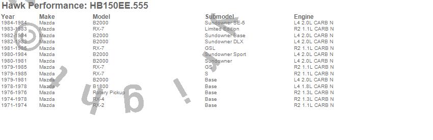 Below is an abreviated list of applications for the Blue 42 Disc Brake Pad.B1800, B2000, Rotary Pickup, RX-2, RX-4, RX-7, Mazda, 1985, 1984, 1983, 1982, 1981, 1980, 1979, 1978, 1977, 1976, 1975, 1974, 1973 moreā¦