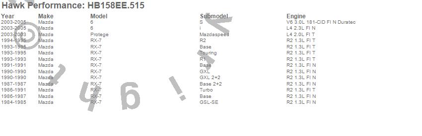 Below is an abreviated list of applications for the Blue 42 Disc Brake Pad.6, Protege, RX-7, Mazda, 2005, 2004, 2003, 1995, 1994, 1993, 1991, 1990, 1989, 1988, 1987, 1986, 1985, 1984 moreā¦